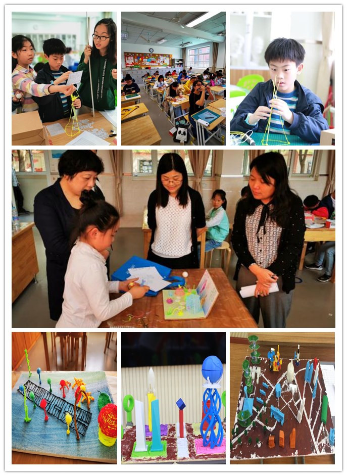 分为未来海洋城市和机构的力量两项。“妙笔生花”学生们发挥各自的想象力,用打印笔做出了桥梁、建筑、风车、海洋生物等立体作品。