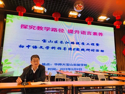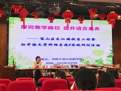 2019年5月9日,宝山区长江路提质工程暨初中语文学科指导团实践研讨活动在华东师范大学宝山实验学校进行。活动以“探究教学路径、提升语言素养”为主题,由长江路提质工程语文学科中心组组长、华东师范大学宝山实验学校教导处副主任朱景贤老师主持。宝山区教育学院教研员黄蓓老师莅临现场指导,濮洪凯老师作为特邀专家进行点评。宝山区初中语文学科指导团队2成员、长江路提质工程学校全体语文教师参与听课、评课活动。