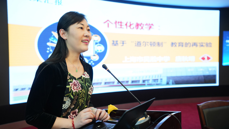 同时,两位子课题的承担教师进行了相应的子课题成果交流分享。吴淞中学韩晔老师作了题为《新道尔顿制下的学生个性化学习——聚焦数学想象促进高中女生数学思维劣势转化的实践研究》的案例分享。吴淞中学马新莉老师作了题为《中学生“合作问题解决”能力提升的跨学科研究性学习设计方法与实施》的案例分享。