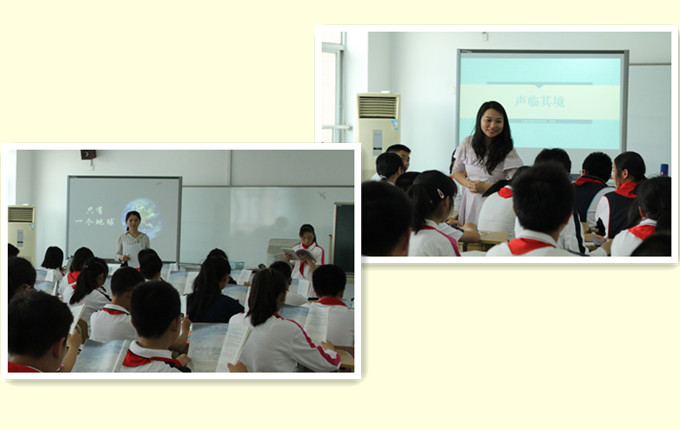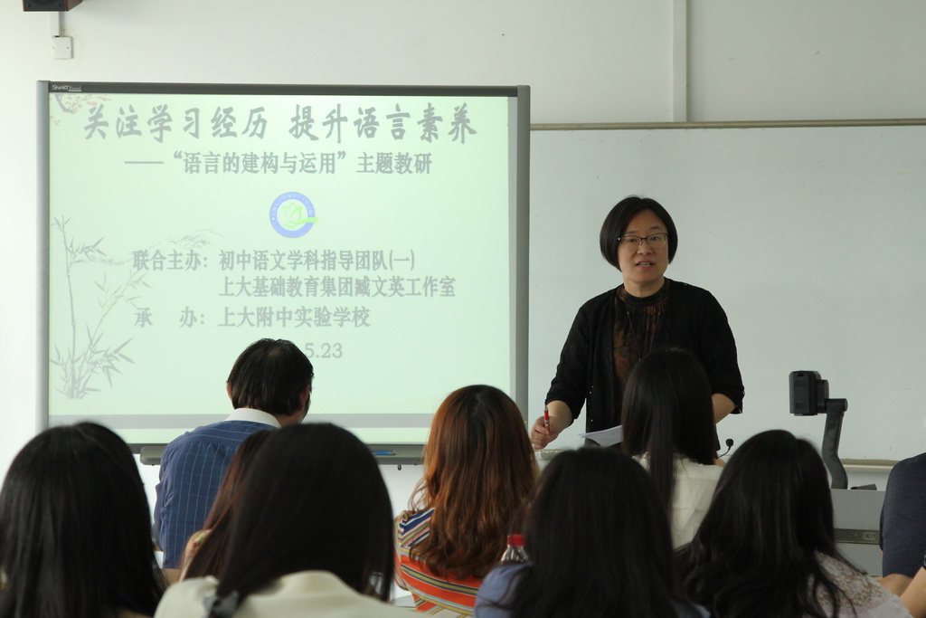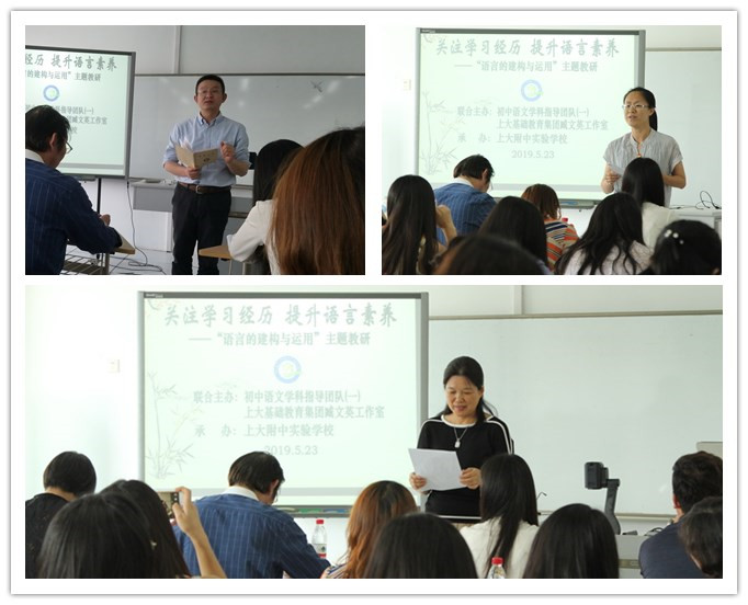 活动首先由来自上大附中实验学校的穆劲伊老师和杨泰实验的徐薇老师分别执教了《只有一个地球》和《声临其境》两堂研讨课。穆老师从说明性散文的行文思路梳理入手,重点教学了如何品读词语和把握作者情感态度的方法;小徐老师则从如何写出声音的画面感、空间感、节奏感的角度展开了一堂妙趣横生的写作指导教学课。