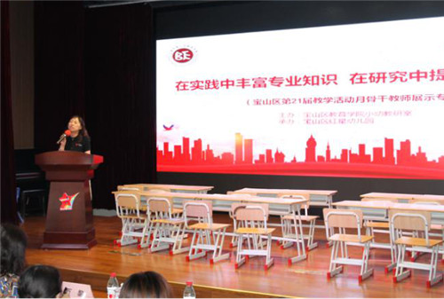 5月29日上午,宝山区第二十一届教学活动月骨干教师教学展示红星幼儿园专场于上午9点准时开始。上海市教育学会幼教专业委员会主任、上海市特级教师、原上海市教委幼特教部主任黄琼老师莅临指导,宝山区各级各类幼儿园将近150名骨干教师参加了此次活动。