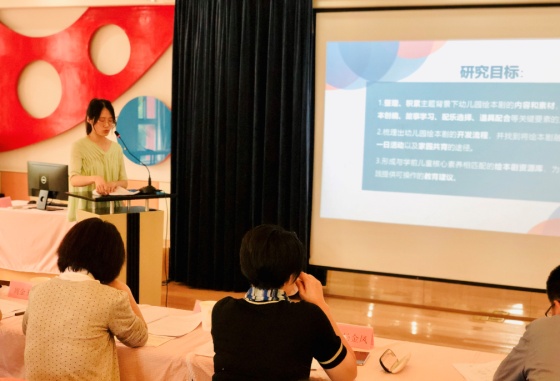 帕堤欧幼儿园课题组、北岸郡庭幼儿园课题组、顾村中心幼儿园课题组分别汇报课题《指向幼儿个性和谐发展的儿童音乐剧活动评价的研究》、《幼儿园绘本剧的开发与实践研究》、《聚焦幼儿自主发展的“音乐时刻”活动范式的实践研究》。