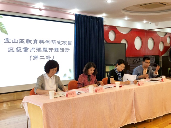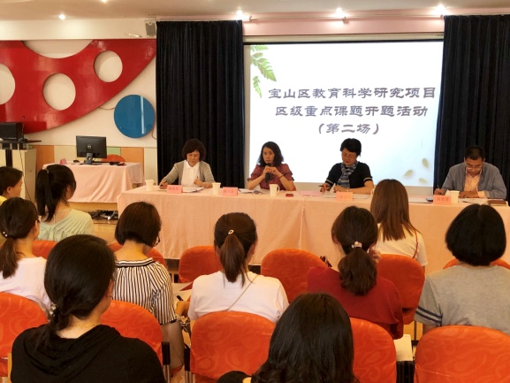 2019年5月27日,宝山区区级重点课题开题论证第二场活动在顾村中心幼儿园举行。上海市学前教育音乐领域专家蔡霞芳老师以及宝山区教育学院科研室科研员周金玉老师、杨金凤老师、袁智慧老师担任开题论证专家,帕堤欧幼儿园课题组成员、北岸郡庭幼儿园课题组成员、顾村中心幼儿园课题组成员以及宝山区部分幼儿园的科研负责人参加了本次活动。