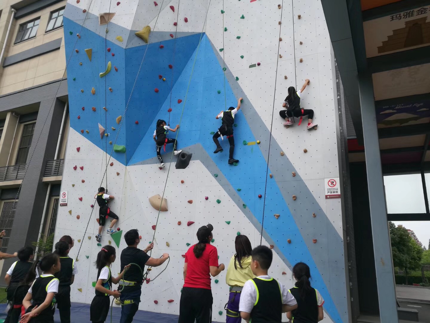 黄老师依据小学体育“兴趣化”的理念,挖掘攀岩教材的锻炼功能和育人价值,运用多种教学环节设计:不同场地的练习体验,趣味化的游戏竞赛,不同难度挑战尝试,多人之间的团队合作,相互间的保护帮助,让学生有效的掌握攀岩动作相关技术。安全带的合理穿着(自我保护),岩壁横向移动和勇攀高峰三个环节的比赛任务。竞赛过程中,考验的不仅仅是学生的协调性、体能以及意志力。更体现出配合的默契,他们通过相互之间的合作与保护,最终体验到了攀岩运动中的乐趣。