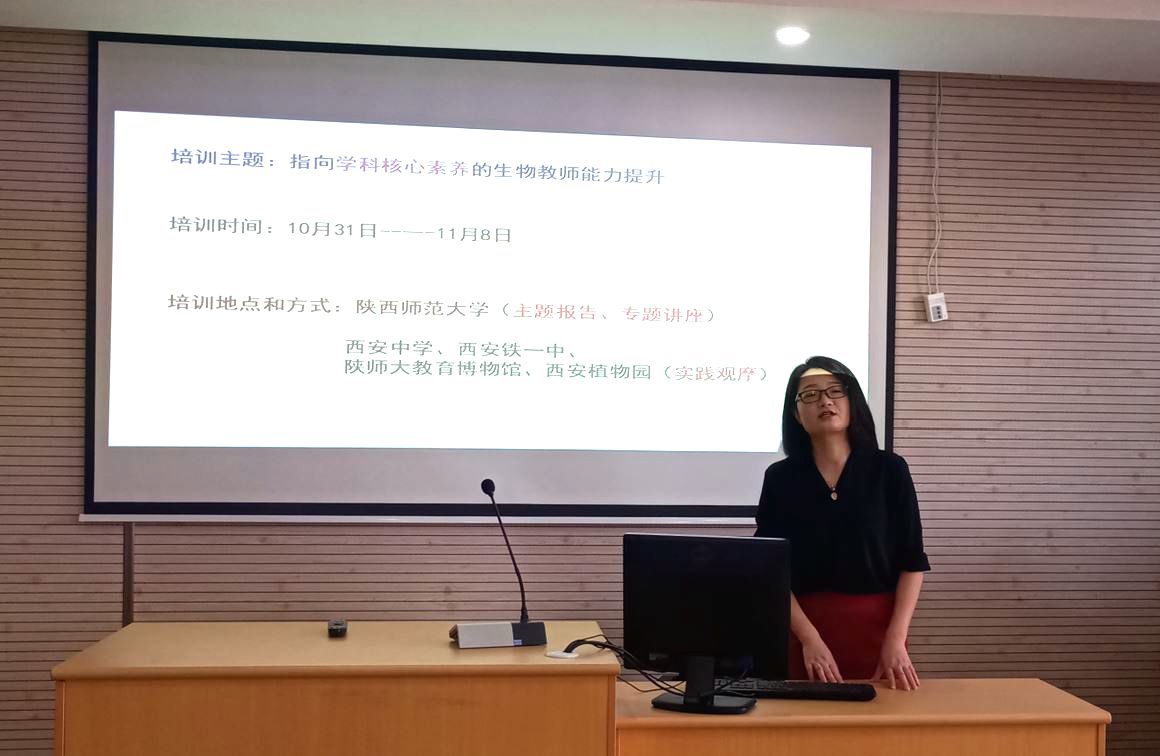 活动伊始,中学生物研究团队成员、宝山区生物学科教学能手、罗店中学晏牡丹老师结合国培计划的培训内容做了题为《指向学科核心素养的生物教师能力提升》的报告。她从“学科核心素养与课程目标”“学科核心素养与教学目标”“大概念、重要概念、次位概念”三方面对课标进行了解读,再从“教学过程的转变——创设情境”和“注重实践与实验”两点出发,联系丰富多彩的实例阐述了落实核心素养的生物学教学方法。