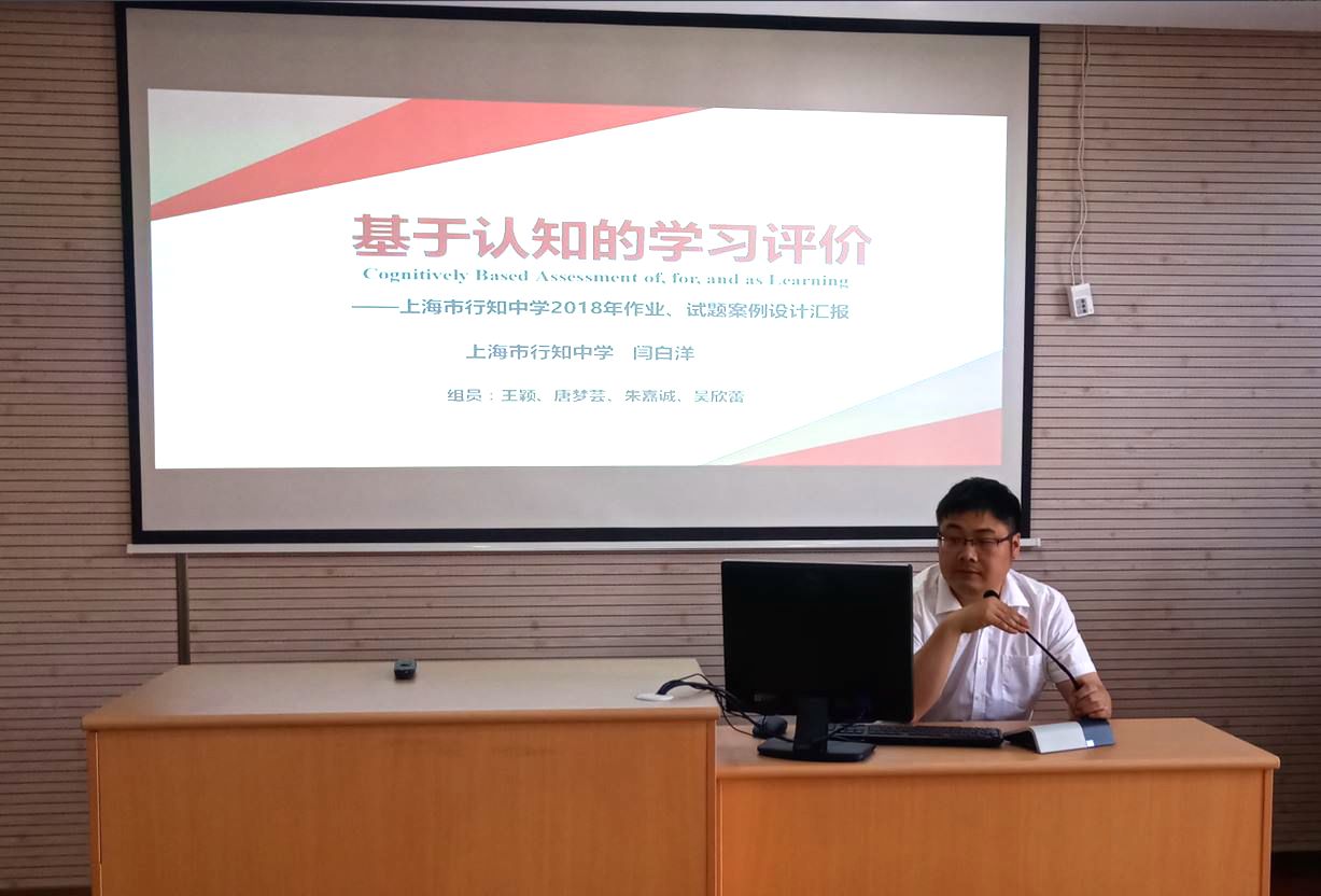 接着,中学生物研究团队领衔人、宝山区青年尖子、行知中学的闫白洋博士以《基于认知的学习评价》为题,阐述了“开发核心素养测评框架和学习进阶”,“创设学科核心素养的测评情境问题”,基于“现象解释”的“静态”测评,基于“任务解决”的“动态”测评,基于“问卷调查”的“多元”测评,以及基于“答案编码”的素养水平判定。