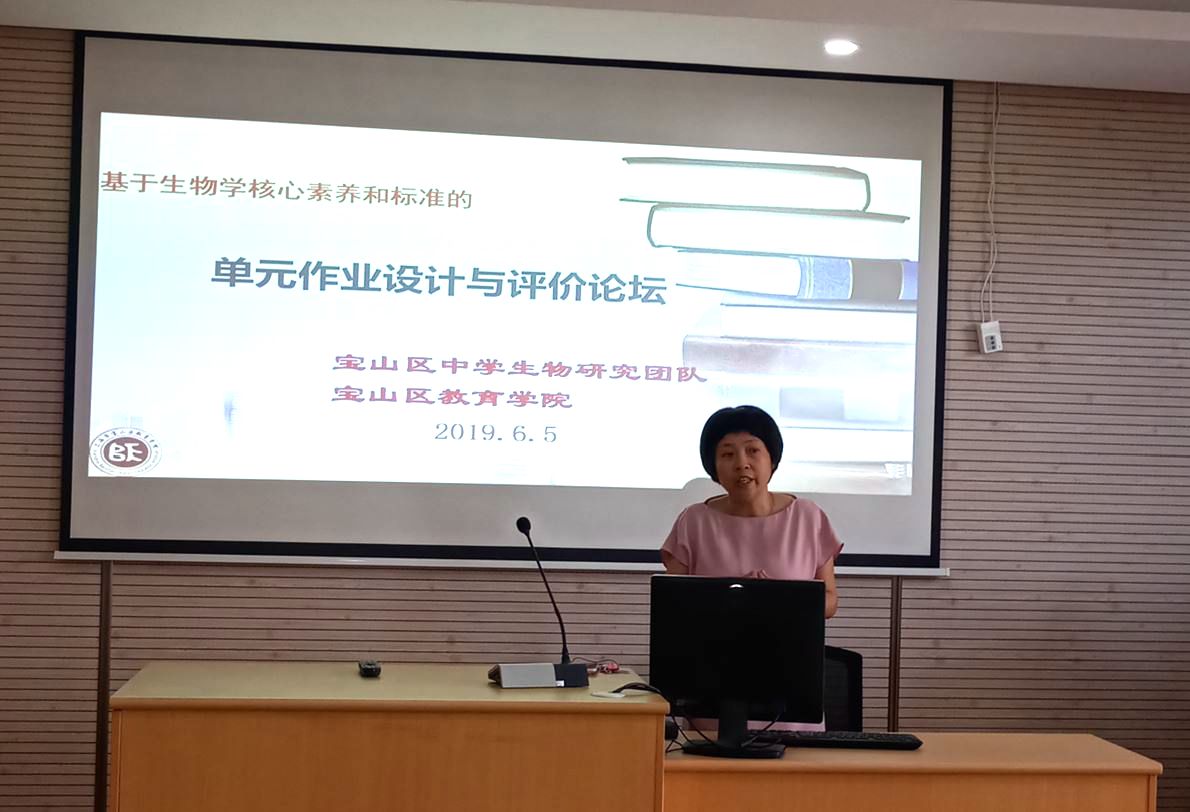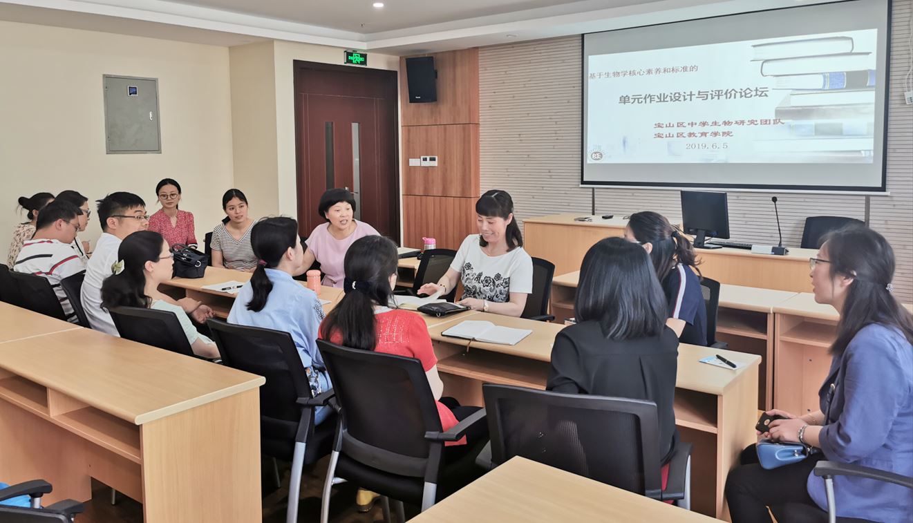 2019年6月5日上午,“基于生物学核心素养和标准的单元作业设计与评价”论坛在宝山区教育学院第一会议室举行。此次论坛是中学生物研究团队对初高中生物学科教师培养的系列活动之一,是为了进一步提高宝山区中学生物学科教师基于核心素养的单元作业设计能力。宝山区教育学院干训处盛美花老师与会指导,宝山区全体初、高中生物教师参加论坛。此次活动由宝山区生物教研员曾榕老师主持。