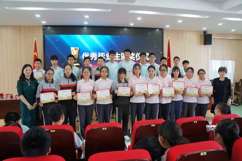 紧接着,周佳琴主任和年级组长钱叶为2019届“优秀毕业生”、“校园之星”颁发奖状,希望毕业生们带着荣誉出发,总有喜讯回传。