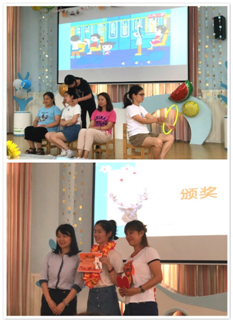 活动伊始,主持人公布了本年度“组长竞聘”的结果,并请两位新任组长与副组长发表了自己的感言。而在新组长演讲后,正式进入了活动的高潮:教师社团亮风采。舞蹈社的老师们身着草裙,为大家带来了极富盛夏风情的开场舞——哇咔哇咔;小剧团的老师们结合当下的社会热点,精彩的演绎了一出公交车上的故事;合唱社团的老师们则献上了歌曲串烧,带领着大家共同回忆了这一年中我们的故事。社团表演后进入了激动人心的颁奖环节,社团的老师们收获满满,脸上都洋溢着欢乐的笑容。而在颁奖仪式后,主持人以CCTV新闻的形式,通过精心制作的视频,回顾了保幼一年来取得的收获与成长。园长妈妈们在之后的讲话,更是让老师们产生了满满的共鸣。