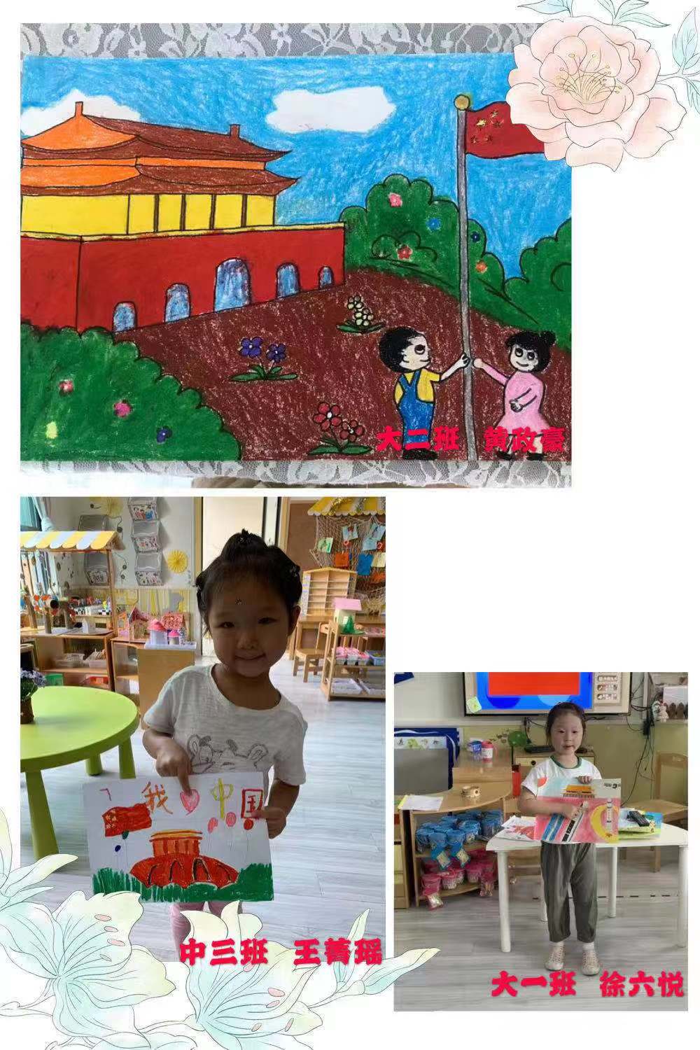 让宝贝们了解十月一日是全中国人民的节日,体验庆祝国庆70周年的欢乐情绪。通过多形式的庆国庆方式,培养宝贝们的民族自豪感。我们发挥自己丰富的想象力和创造力,通过记录、绘画等方式纷纷表达自己对祖国的祝福。