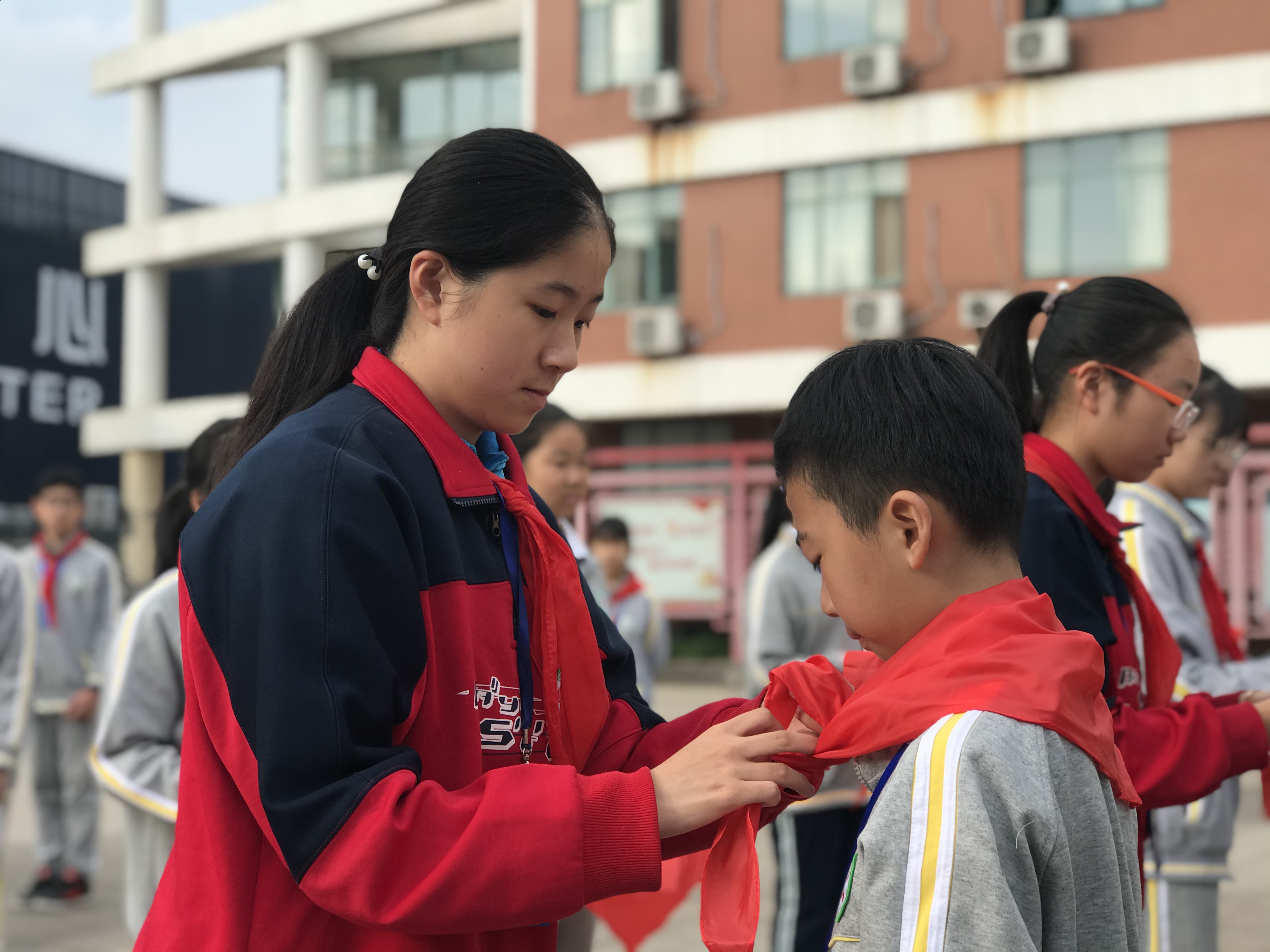 仪式在嘹亮的出旗曲和铿锵有力的鼓乐中拉开序幕,全体少先队员一个个精神饱满。首先由党支部戴书记为大家致辞,向六年级的队员们寄予了殷切期望,提醒队员们:“人大领巾大、人大责任大、人大志气大”。随后在《中国少年先锋队队歌》的旋律声中,队员们摘下了自己的“小红领巾”,仔细叠好、珍藏好,高年级优秀的少先队员代表为其戴上了象征成熟和责任的大号红领巾。戴上大红领巾的队员为自己的成长激动而自豪,同时也明白了胸前的大红领巾不仅是一份光荣更是一份责任。