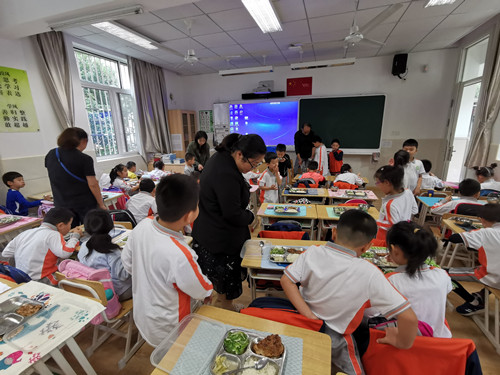 课堂展示之后,一年级家委会的成员们在陈荣老师的带领下来到了学校食堂,了解食堂的卫生情况、午餐配置、用餐环境。活动结束后,家长们通过扫描二维码信息,即时填写了本次活动的反馈表,并留下了对本次活动的意见和建议。可以看出家长对老师们的精彩教学感到满意,对孩子的成长进步感到欣慰。同时,家长们提出的宝贵意见也有助于学校今后更好地开展此类活动,进一步地加强家校合作,共筑孩子美好未来。