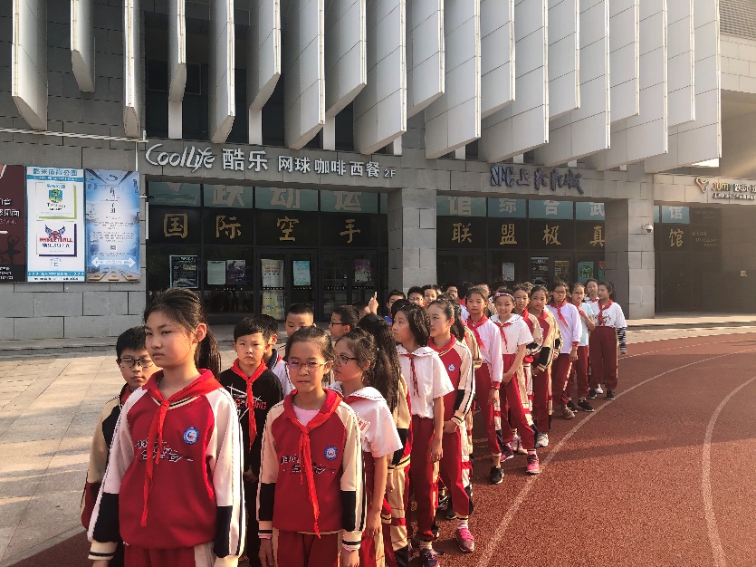 24日,宝教院实验学校三至五年级同学列队前往宝山上影国际影院,观看电影《攀登者》。