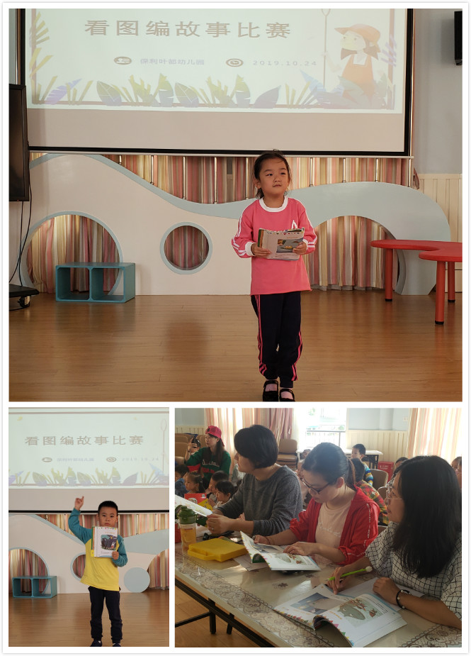 故事给孩子们带来了生活的乐趣,为幼儿打开了一扇认识世界,增加认识的大门。为了营造一个学说、敢说的语言氛围,为提高幼儿的想象力和语言表达能力,给孩子们一个表现自我、展示自我的机会,培养幼儿的自信心。近日,保利叶都幼儿园进行了“看图编故事”比赛。