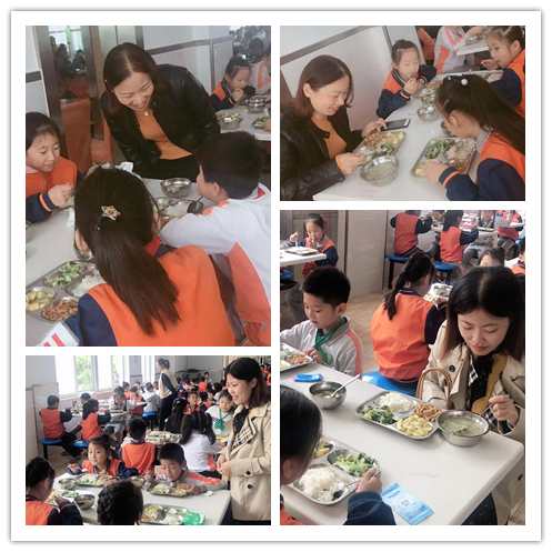 午餐时,二年级和四年级的两位家委会主任来到食堂,和孩子们共进午餐,并与孩子们亲切地交流了学校午餐的情况。