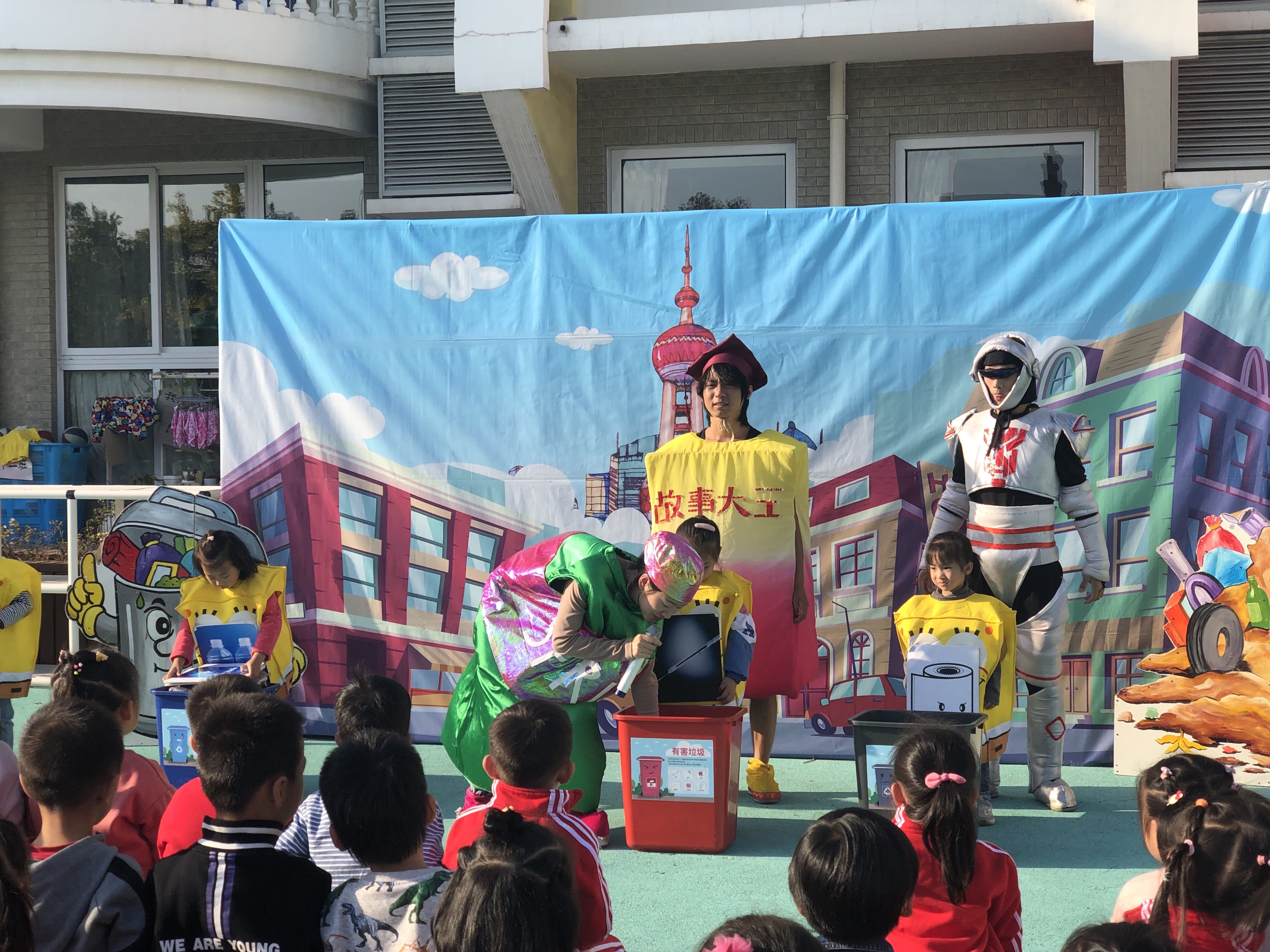 整个演出活动让幼儿的情绪高涨,随着故事情节的发展,大家时而紧张、时而兴奋。木偶剧表演结束后还邀请了小朋友上台互动,进行垃圾分类回收,更是引起了小朋友们的一阵阵欢呼。
