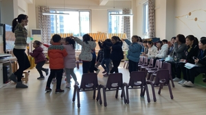 活动以分层指导的形式开展。在主会场,园长与家长分享音乐欣赏对孩子表达表现发挥的作用。分会场中,根据不同年龄阶段孩子的特点、兴趣分别通过音乐欣赏、听辨旋律、故事情景、游戏情境等形式,借助想象表现、肢体表现、美感体验的途径,指导家长在生活中有效地发挥音乐欣赏对孩子大胆表达表现能力的促进,同时更能提升孩子的多元能力。