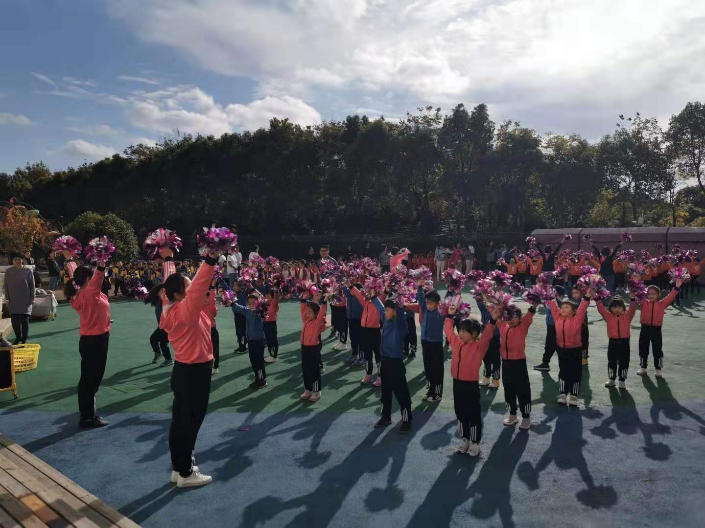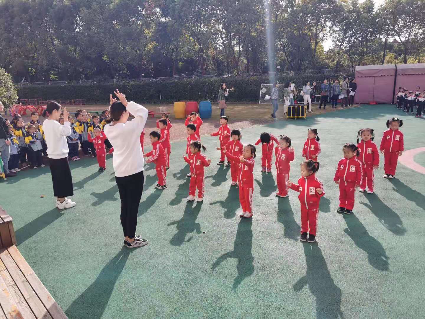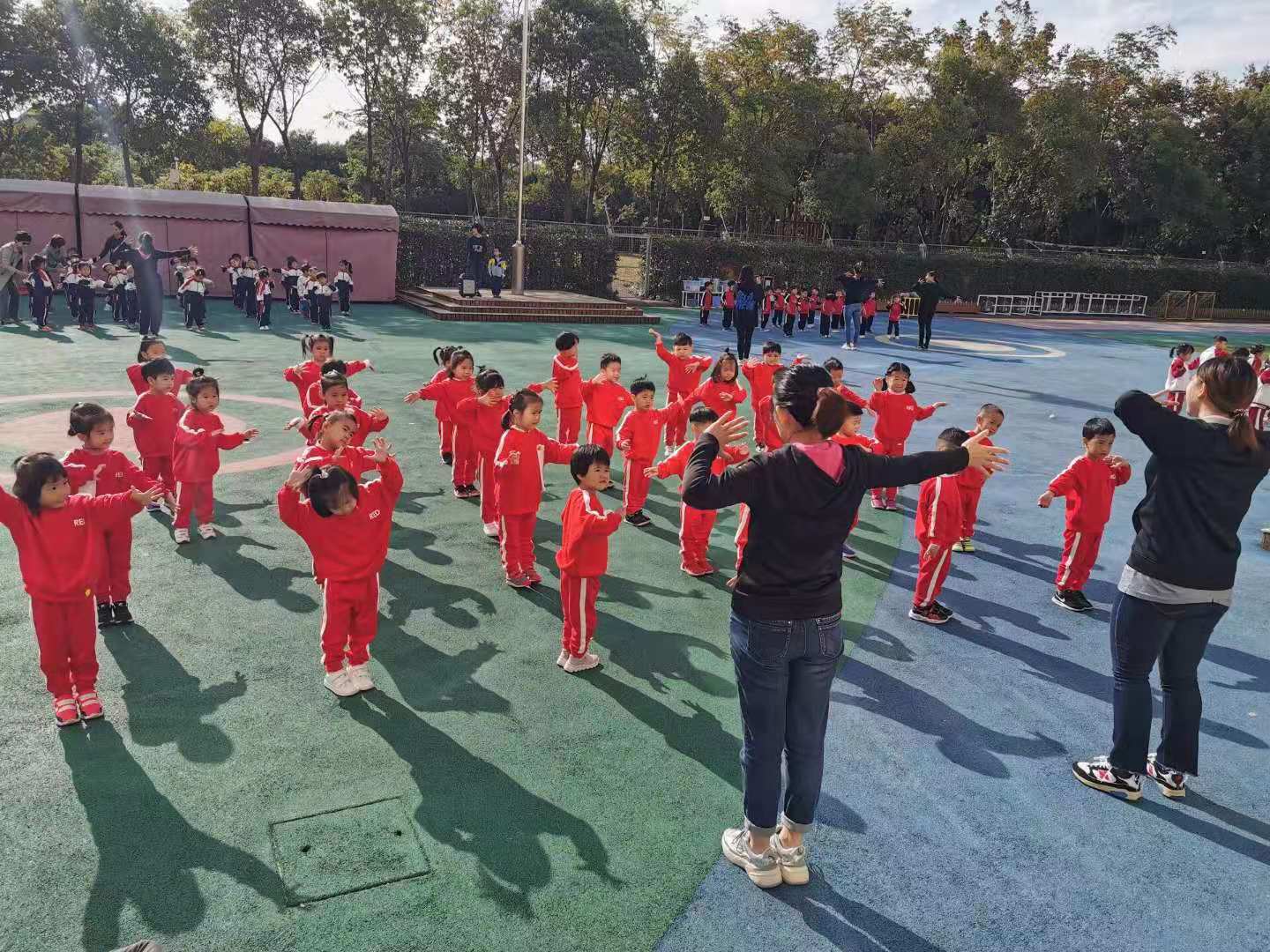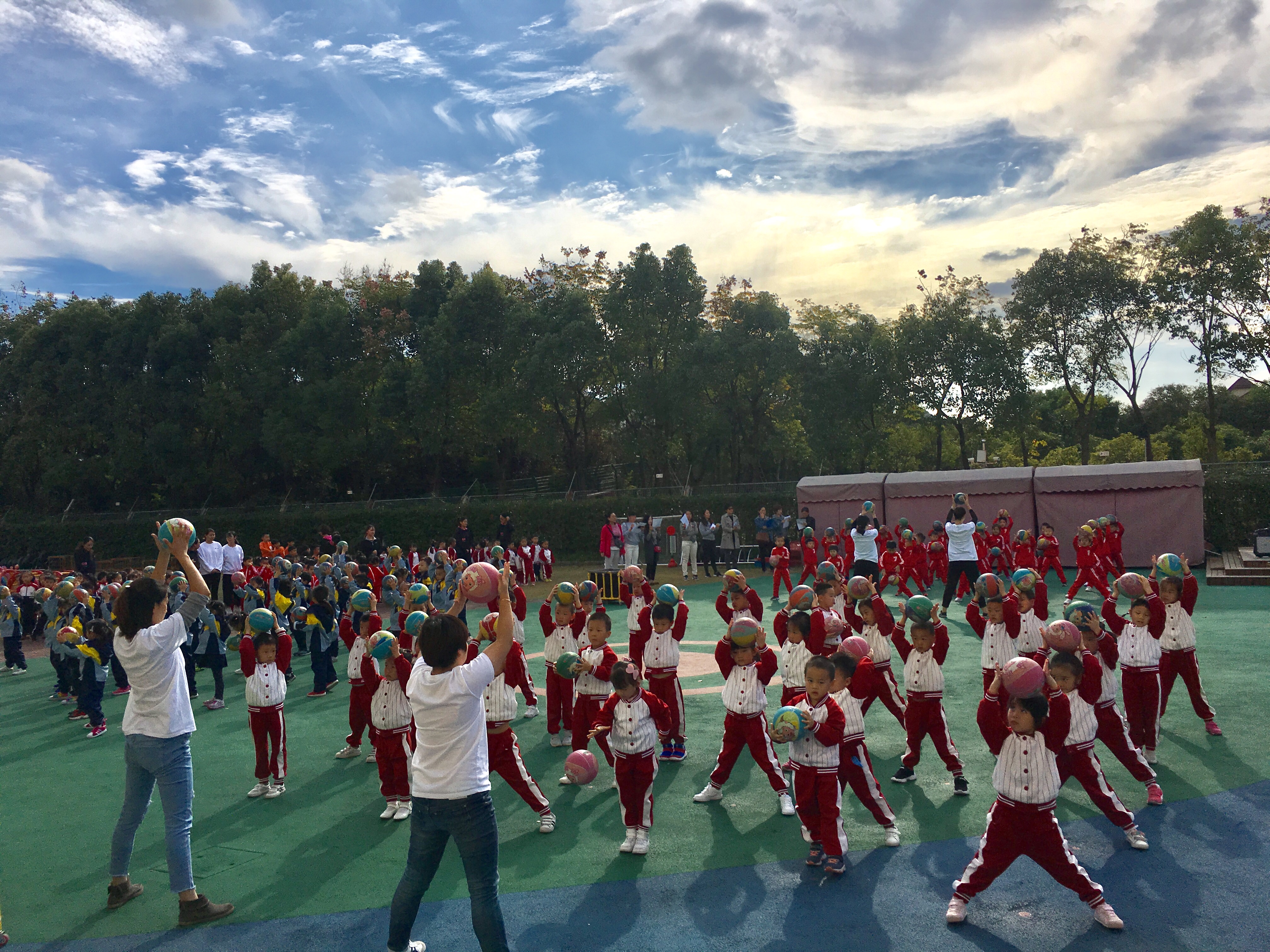 运动场上首先开始的是小中大班的广播操大比拼……
