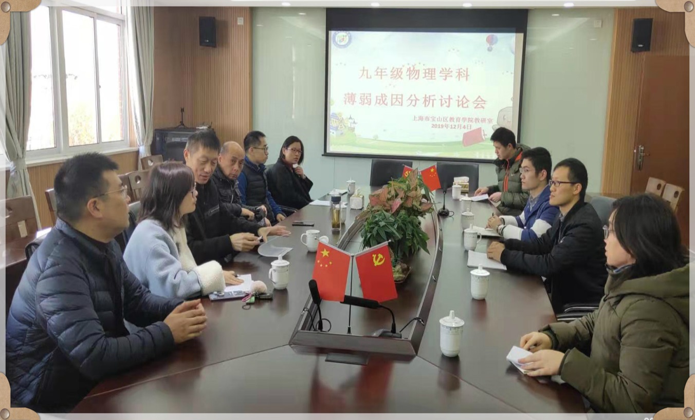 12月4日上午,上海市灵石学校在三楼第一会议室举行“九年级物理学科薄弱成因”主题分析讨论会。参加本次会议的是来自本区10所兄弟学校12名九年级物理教师代表。区教育学院教研室九年级物理学科教研员颜奎老师专程莅临我校指导召开本次主题会议。