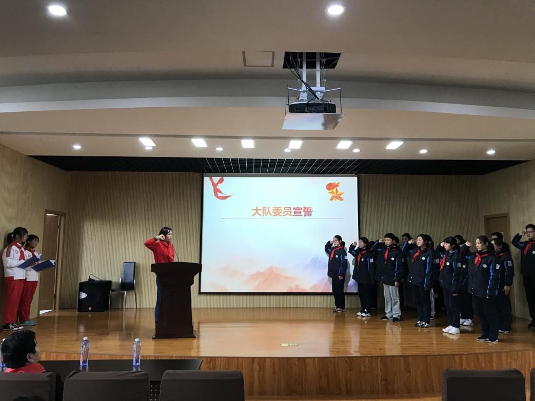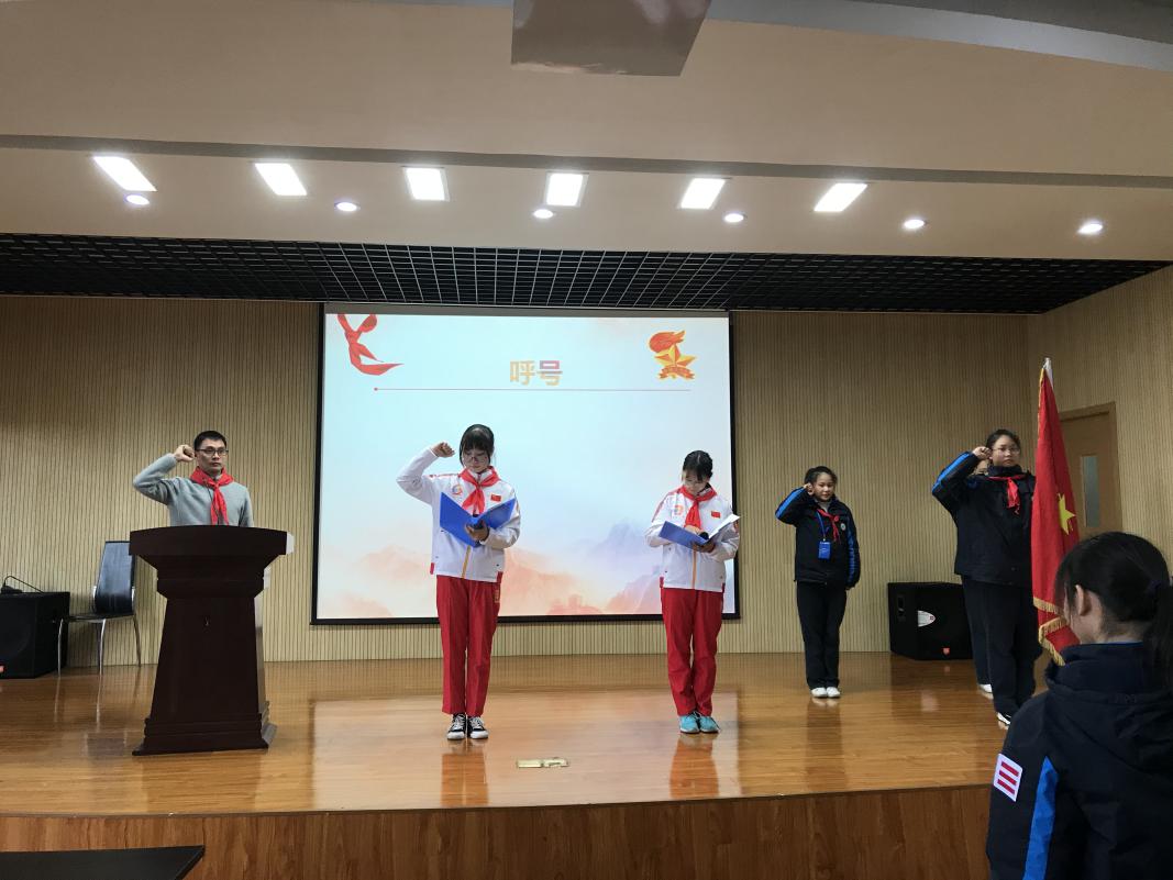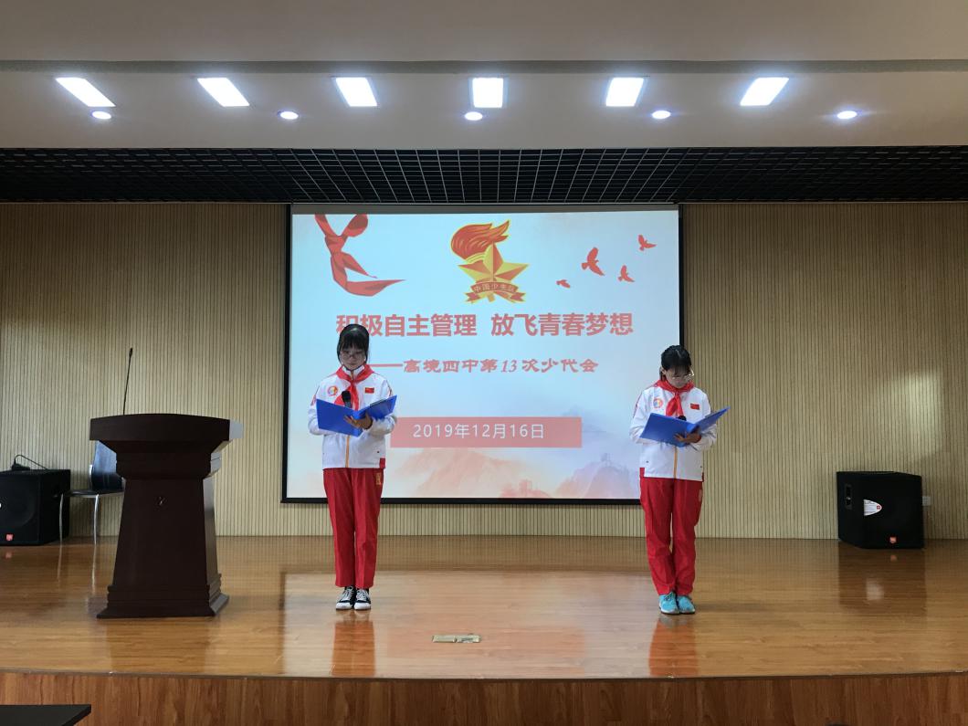 2019年12月26日下午,高境四中隆重召开了“积极自主管理,放飞青春梦想”第13次中国少年先锋队代表大会。在激昂的出旗曲中,礼仪队员们将鲜艳的红领巾献给了出席本次盛会的领导,全体饱满地唱起了《中国少年先锋队队歌》,歌声嘹亮,久久萦绕。