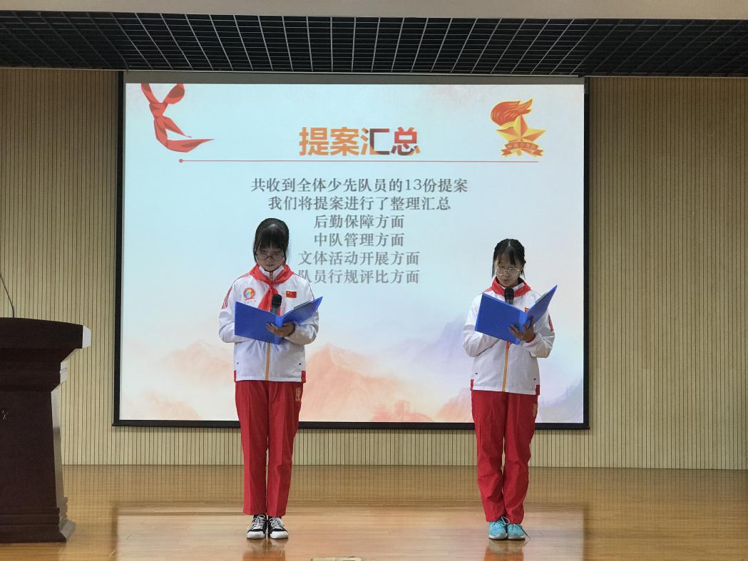 在各部门新任大队委员就职演说后,总务主任施老师带领新当选的大队委员进行宣誓。针对本次少代会收到全体少先队员的14份提案,大队部将其进行了整理汇总,并将合理可执行的提案提交相关职能部门对所提及的问题进行解决。