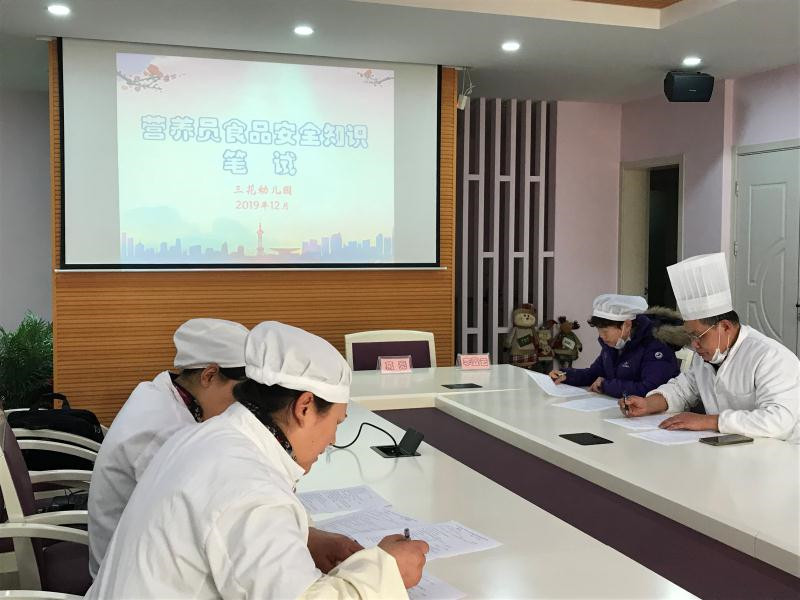 为了进一步提高三花幼儿园营养员点心制作的水平,更好服务于幼儿,让幼儿能吃到更可口、更美味的点心,我园于2019年12月27日下午,在三花幼儿园总园开展了营养员技能竞赛活动。活动分为两部分:第一部分,营养员点心制作;第二部分营养员食品安全知识考核笔试。