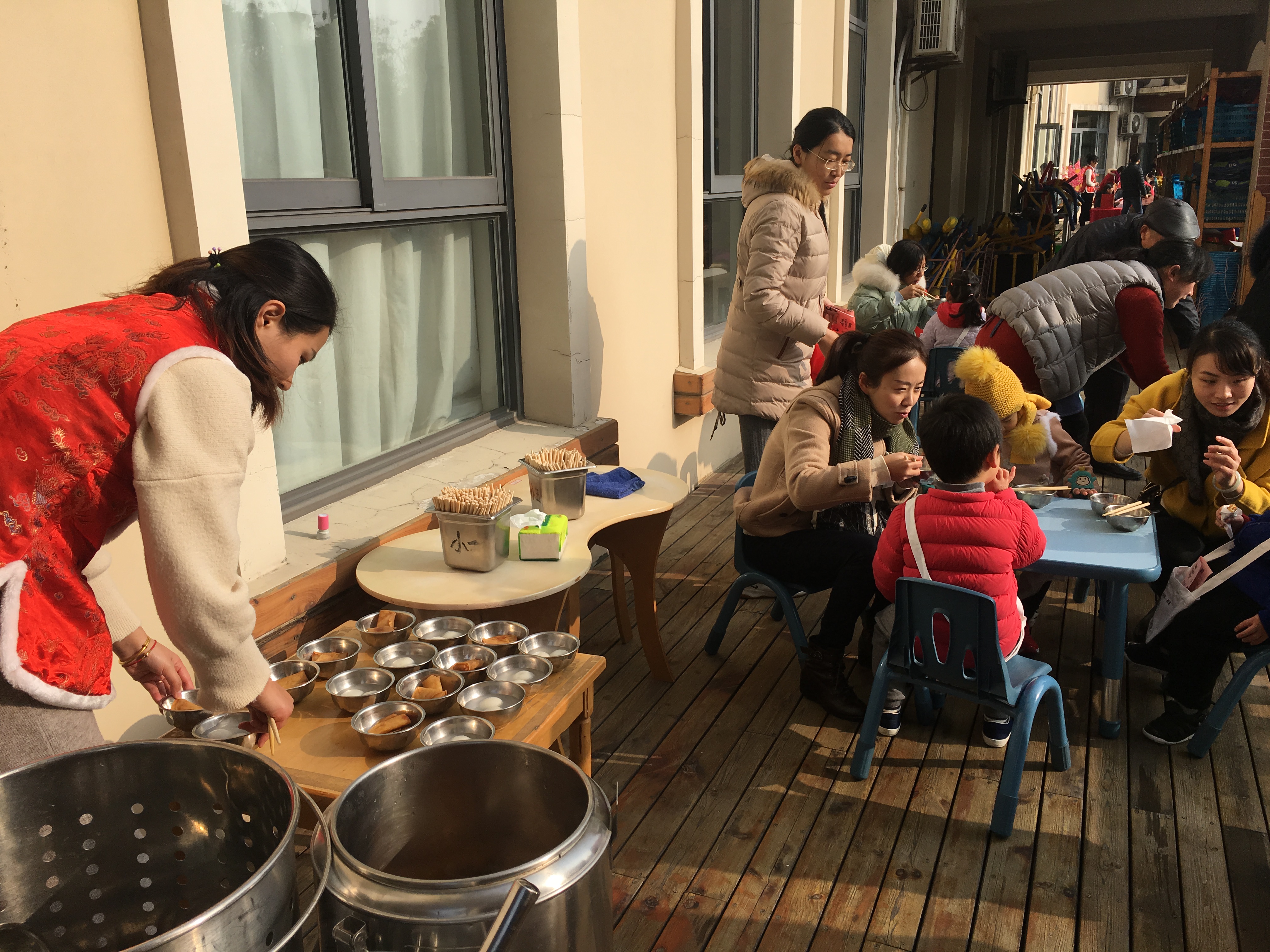 卖汤圆……卖汤圆……圆圆的汤圆圆又圆……”伴着耳熟能详的儿歌,孩子们和爸爸妈妈一同品尝着热乎乎甜蜜蜜的小汤圆……飘香的新年美食间里门庭若市……