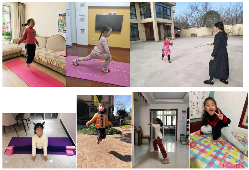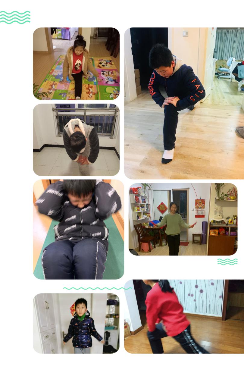 宅在家里也不能忘记体育锻炼哦!强健的体魄是精神的居所,也是抵御疾病的保障。同学们在家也不忘体育打卡,甚至还叫上了爸爸妈妈一起动动手、动动脚。开展锻炼的同时,也让家里充满了银铃般的笑声。