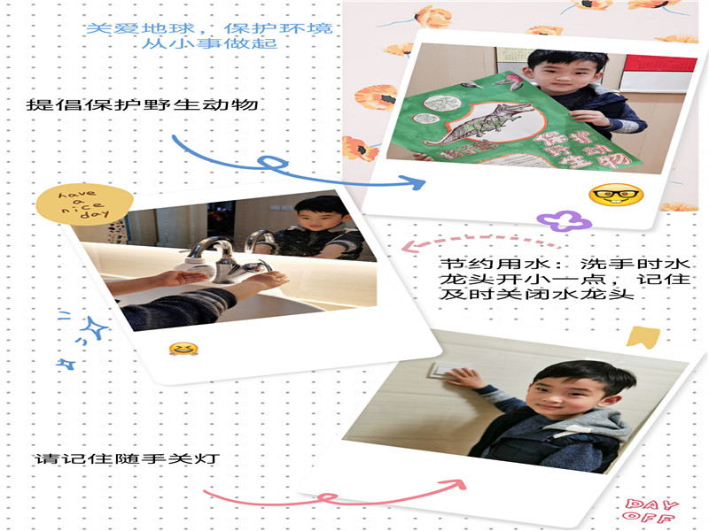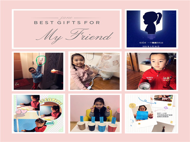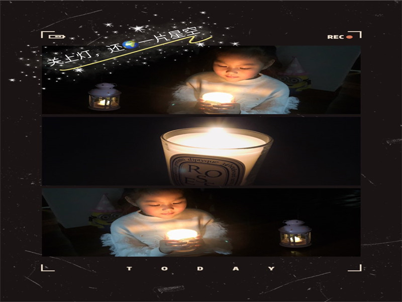 家长和孩子们纷纷响应,小班组的孩子们以家庭为单位,收集废旧电池、电子产品,进行分类,减少污染;中班组的孩子们和家长共同制作了生动有趣的“关爱地球、爱护环境”的主题画;大班的孩子们则根据已有的知识,和家长一起进行垃圾分类,践行环保。在3月28日晚上20:30—21:30,许多家庭熄灭了家里的灯光,放下手机,有的和孩子玩起了灯影游戏,有的和孩子一起欣赏璀璨的夜空……大家选择了环保的方式和孩子一起度过这段有意义的时光。