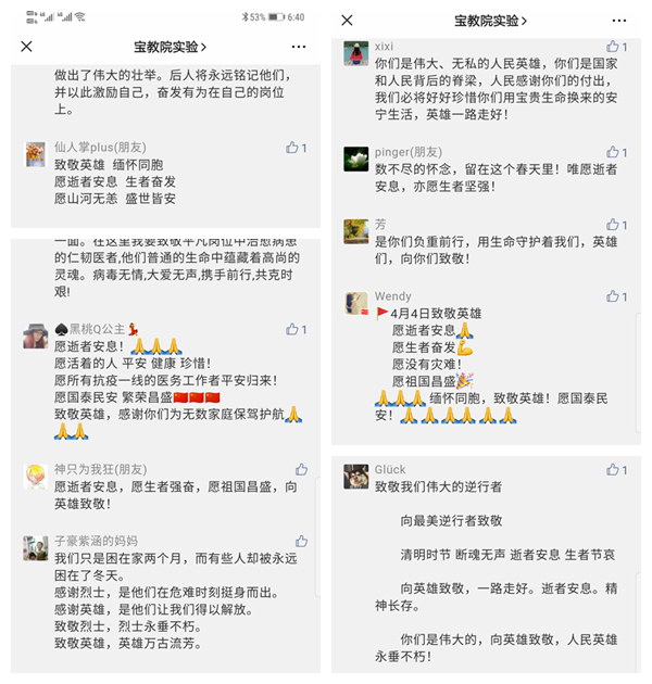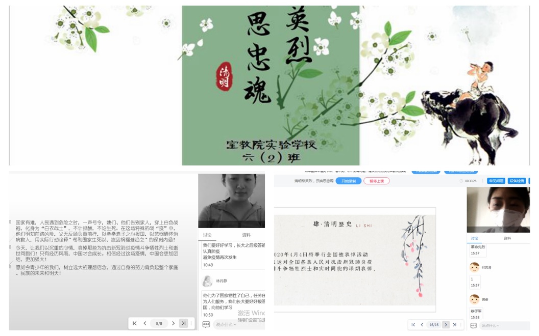 为表达全国各族人民对抗击新冠肺炎疫情斗争牺牲烈士和逝世同胞的深切哀悼,国务院决定,2020年4月4日清明节举行全国性哀悼活动。为配合哀悼活动的开展,宝教院实验学校也开展“众志成城,童心协力”线上德育活动,引导同学们缅怀英雄,学习英雄,以疫明志,抗疫树德。
