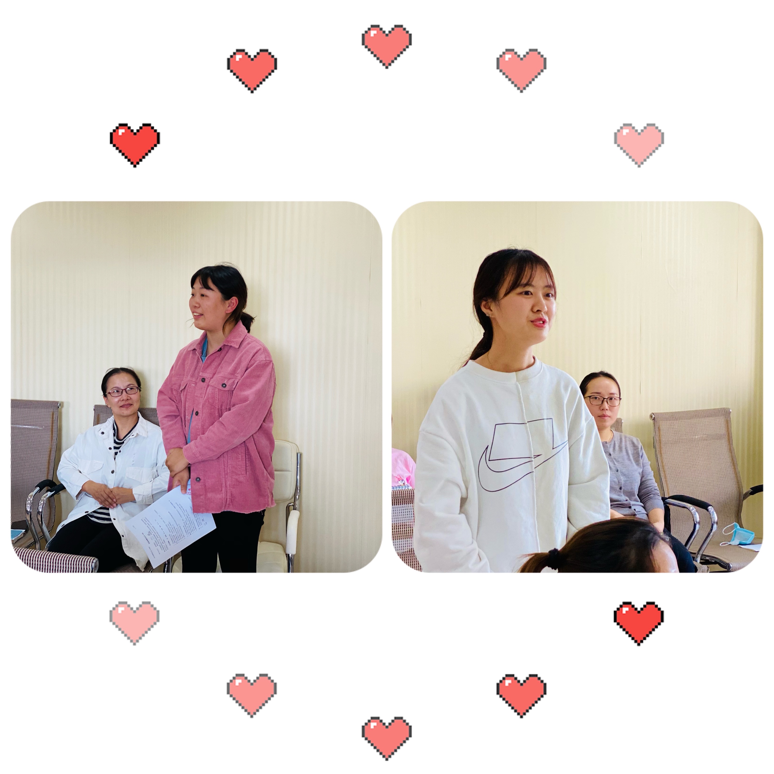 每一对师徒内心都感慨万千,徒弟代表小周老师表示会在师傅的带领下多问、多听、多总结、多观察,做一个善于学习的徒弟。小张老师表示通过师傅的言传身教和自身的努力,能够在保健这块天地里茁壮成长。