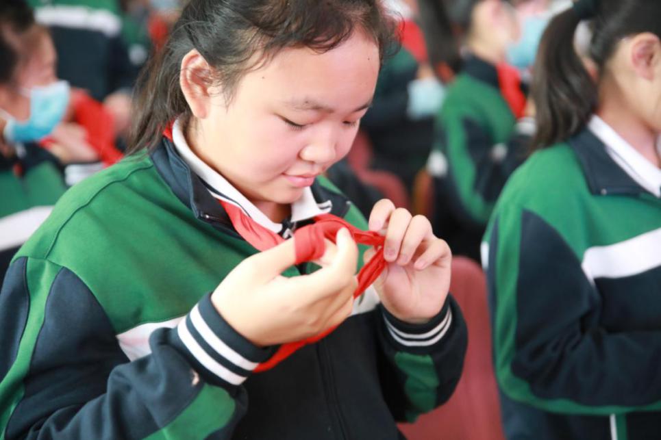 2020年10月22日,我校大队部开展了“学‘四史’传薪火立志向践行动”少先队六年级换戴大号红领巾仪式活动。