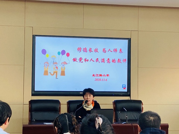 为深入学习、贯彻党的精神,践行社会主义“荣辱观”,加强师德师风建设,牢固树立“以人为本”的理念,努力办好“人民满意的学校”,争做“人民满意的教师”。2020年11月6日,全体教师集中在多功能教师参加主题为“修德长技、为人师表,做党和人民满意的教师”的师德主题活动。