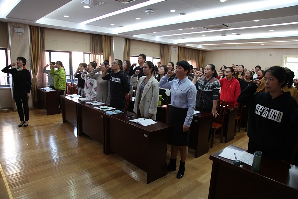 接着,全体教师在唐书记的带领下,公开承诺:严格遵守《中小学教师职业道德规范》、《中小学教师职业行为规范》和《教师职业道德“十要十不准”》,并郑重承诺做到:依法执教;爱岗敬业;热爱学生;因材施教;廉洁从教;为人师表;遵章守纪;尊重家长;团结协作;热爱学校。