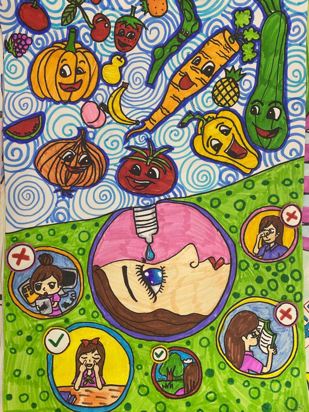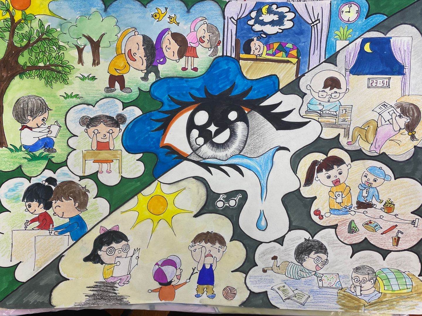 为贯彻落实习近平总书记关于青少年近视问题的重要指示精神,引导少先队员强化“每个人是自身健康的第一责任人”意识,营造良好的爱眼护眼氛围,倡议家庭、社会“共同呵护好孩子的眼睛,让他们拥有光明的未来”,广育小学队员们积极响应活动倡议,通过绘画、童谣创编的方式普及近视防控知识。