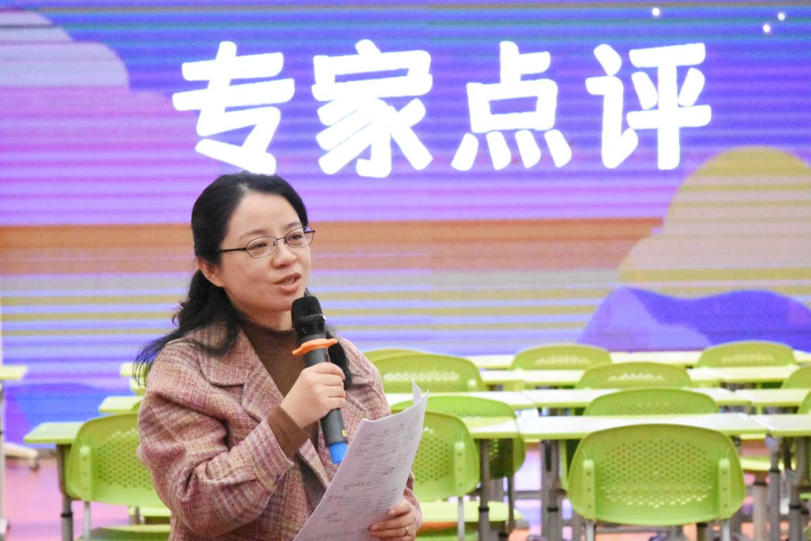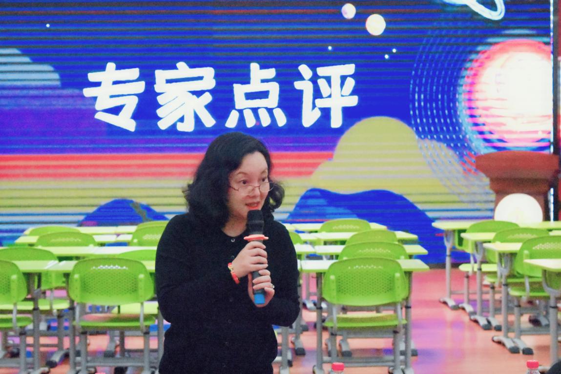 课后,杨浦区教育学院黄芳老师对本节课做了点评。黄老师从学习活动的三个层次:学习理解、尝试运用和创新运用三个方面具体解析了本课的活动推进,对课堂展示的质量予以肯定。同时黄老师给出了宝贵的建议,她认为教学评价应当建立直指本课时的、个性的评价规则,真正做到以评促学。