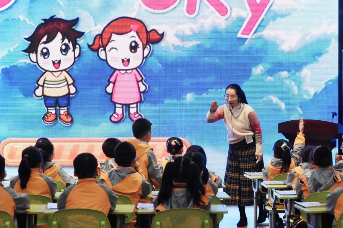随后,和衷小学的潘老师进行了二年级m4u1in the sky第一课时thenicesky的教学展示活动。课堂中,我校二(4)班的孩子们跟随着老师创设的kitty和ben参与科技节制作关于天空的手抄报的情境,完成听、说、读、演等各种活动,在活动体验中开展真实而有意义的语言交流。孩子们良好的学习状态和充满情感体验的课堂互动给大家留下了深刻的印象。