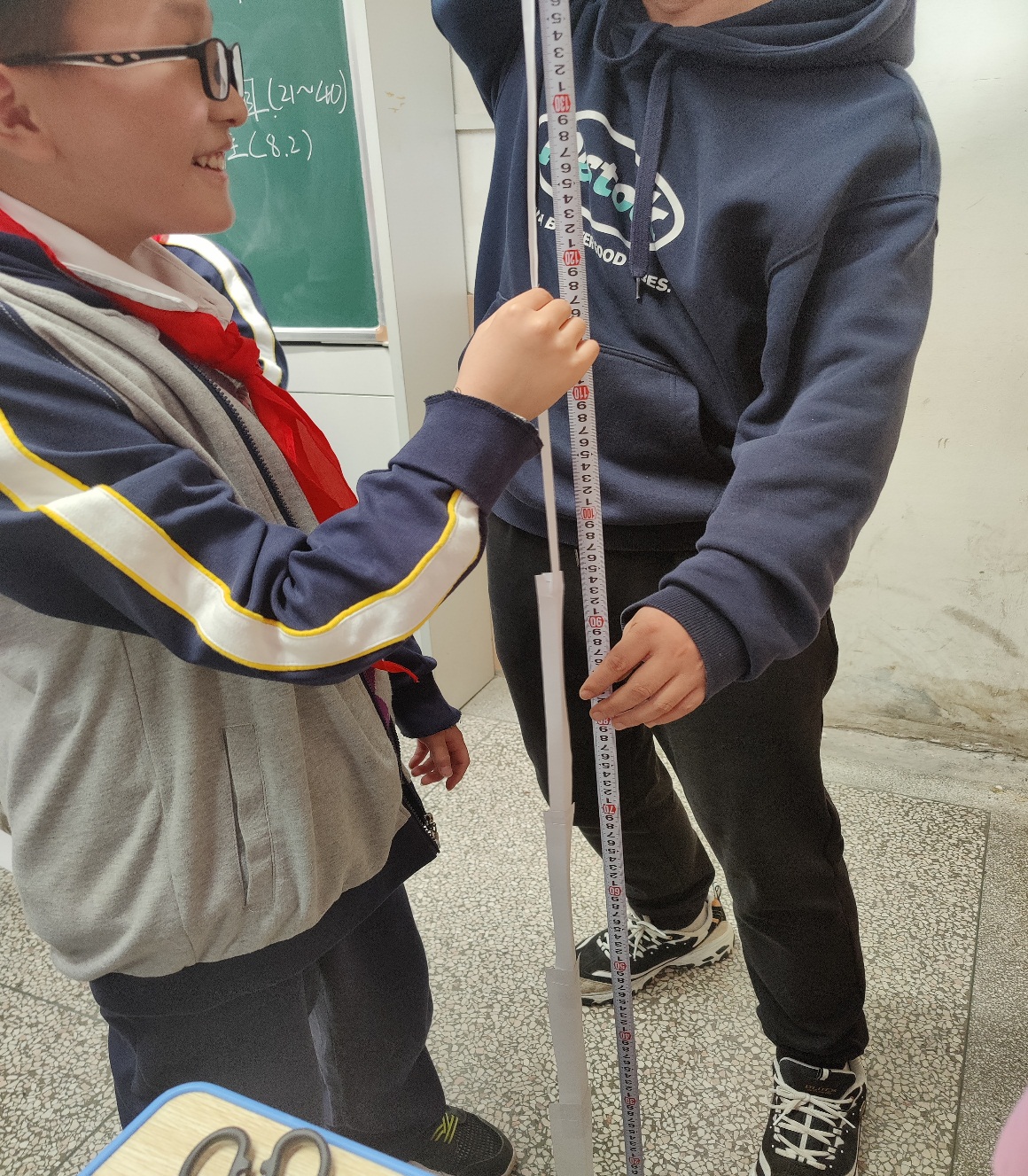 一张a4纸,在六年级的同学们的手中通过不断地撕、折、叠、卷等技能,高度越变越高,好几个同学叠的高度超过了1米。制作的兴头正高时,学生们就席地而坐,一个个为了达到新高度而忘乎所以了呢!