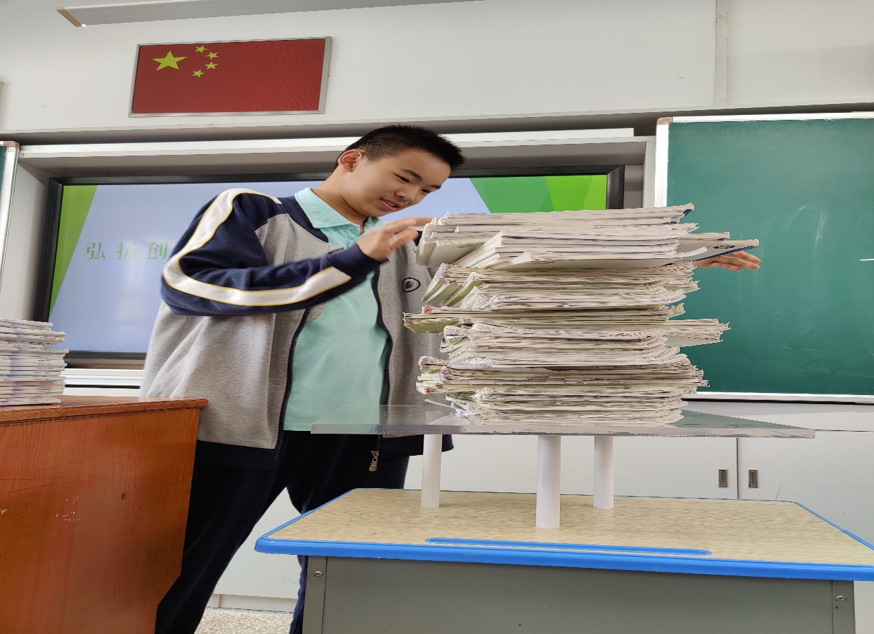本届科技节以“弘扬创新精神增强创新能力”为主题,同学们各展所能,利用一张薄薄的a4纸张,完成了各项比赛。