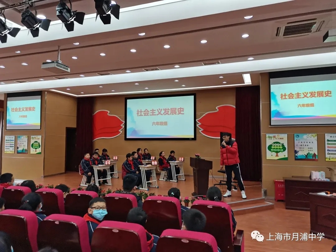 最近,上海市月浦中学开展了主题为“四史”达人我来赛的知识擂台赛。前期班级初赛,选派队员参加年级决赛。学校为不同年级设置了“新中国史”、“社会主义发展史”等不同竞赛主题。