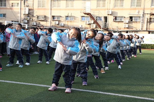 做操中,同学们个个精神抖擞,动作整齐规范。扩胸、转体、踢腿,动作娴熟到位,张弛有度。充分展现了一年级学生朝气蓬勃、团结一致的精神。获得了全校师生的掌声鼓励。