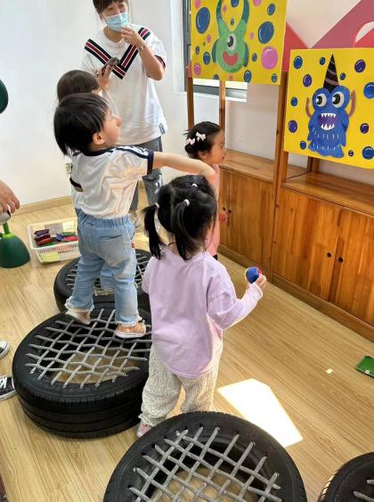 随后,精彩、有趣的运动游戏正式开始啦!宝贝们在“探险”的同时也能得到钻、爬、上肢力量等运动能力的发展。