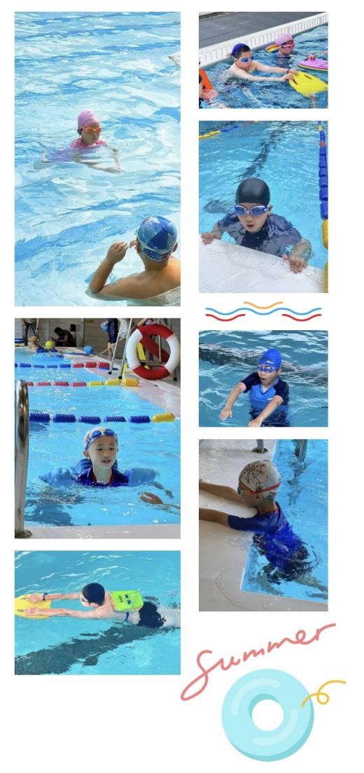 炎热的夏天里,游泳项目成了同学们的最爱。游泳不仅可以保持体能,还可以提高心肺功能。看!蛙泳、自由泳、蝶泳等动作呼吸自然、张弛有度。孩子们玩得开心,练得认真,一个个都是灵活的“小水兵”。