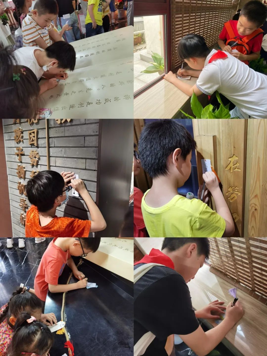 听完讲解之后,是孩子们的自主学习时间,因为他们需要完成一份特别的作业——写书签。书签上要求记录的可以是陶爷爷的名言,也可以是关于他的其他信息,选择余地很广泛。为了好好完成这份作业,大家在展厅内重走来时路,用发现的眼睛去搜索,在书签上默默记录下自己感兴趣的内容。