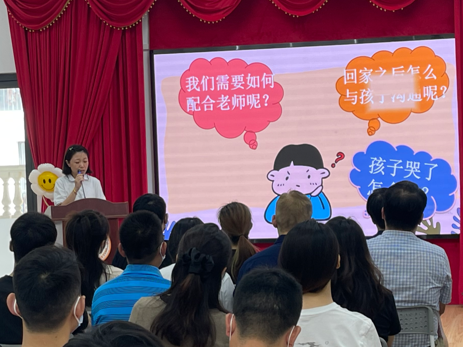 活动的最后流程是参加班级家长会,各班教师结合案例的形式,从班级具体情况、幼儿在园一日活动作息、幼儿自理能力培养、入园物品准备、家庭心理准备等几个方面细致地进行了介绍,让新生家长们对幼儿入园有了更为直观的认识和了解,也给新生家长带来了入园准备的满满干货。