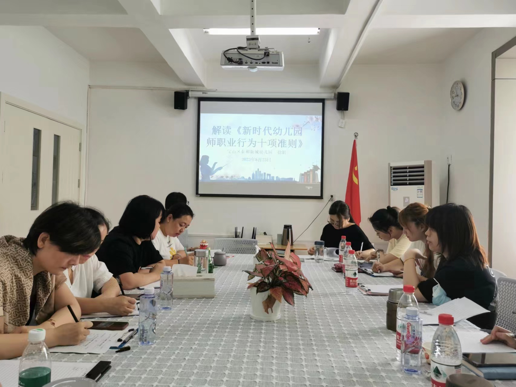 《新时代幼儿园教师职业行为十项准则》是规范幼儿园教师职业行为和提升幼儿园教师师德的重要文件,为教师严格自我约束、规范职业行为、加强自身修养提供了基本遵循。园长顾丽芳对《新时代幼儿园教师职业行为十项准则》进行了深入的解读,用质朴的语言、身边的人与事,娓娓道出教育人的初心与使命,就如何修身律己,找寻专业成长新起点提出希望。在“坚守初心、保持工作定力”方面,引导每一位教师要做一个有理想信念、有道德情操、有扎实学识、有仁爱之心的教师。鼓励教师们在成长路上,要时刻充满激情,富有责任,善于归零,每天都是一个新的起点,找到新的增长点,于工作实践中尽力、尽责、尽心。