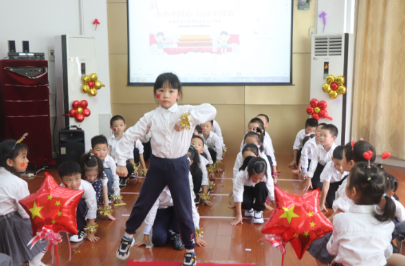 泰幼萌娃们为祖国妈妈带来了爱国主义红歌,唱出了对祖国最真挚的情感。瞧!孩子们手执小红旗,伴随着动听的旋律和优美的动作,唱响了《党是太阳我是花》《小蜡笔》《大中国》等一首首经典的爱国歌曲。此刻那闪烁的“爱国心”的种子已在孩子们的心中生根发芽。