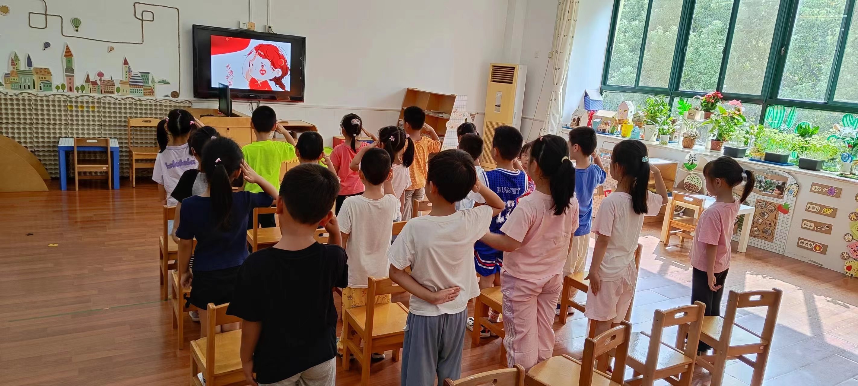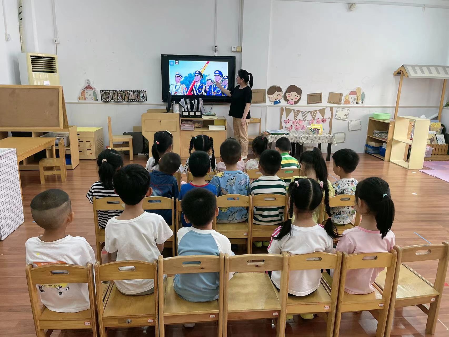 鲜艳的五星红旗像一团炙热的火焰,冉冉升起,雄浑激昂的《义勇军进行曲》在扬波幼儿园响起。孩子们和老师伴随着乐曲唱响国歌,向庄严的五星红旗行注目礼,表达着崇高的敬意。孩子们在老师的带领下观看了阅兵仪式、了解国庆节的由来,国旗、国徽等知识。和伙伴们一起用歌声表达对祖国妈妈的祝愿。
