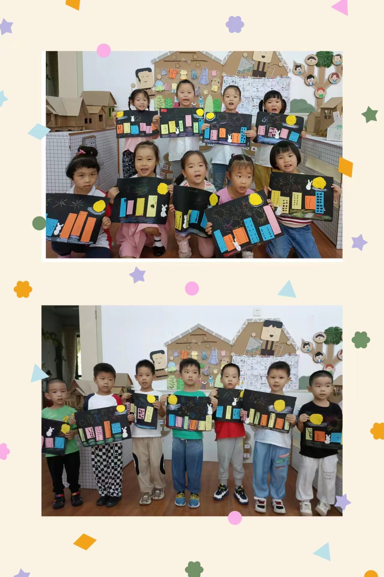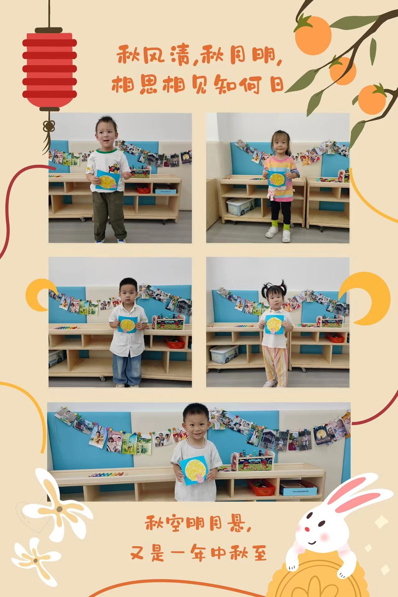 大班孩子们用画笔绘制了象征团圆的月饼。中班宝宝们通过绘画、添画等方式描绘中秋节美丽景色。小托班的宝宝们把甜甜的祝福融进五彩斑斓的色彩里,孩子们用他们的小巧手和奇思妙想做出了一枚枚造型独特的月饼。