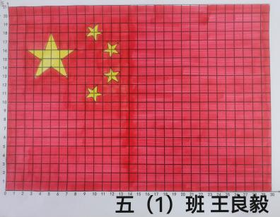 五年级学生结合课内学过的内容,利用圆规、直尺等工具,通过画五星红旗、读国旗内涵,表达自己的爱国情怀。